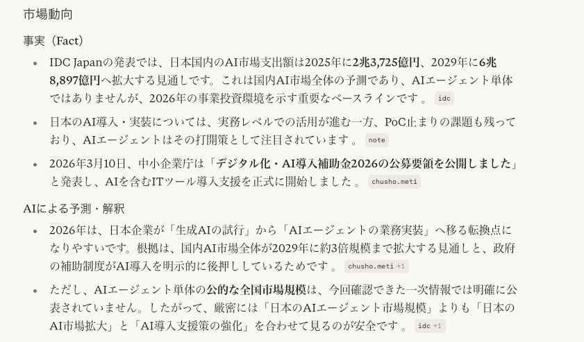 今回の検証では、出典表示が分かりやすく、事実と解釈を整理しながら確認しやすい印象でした。