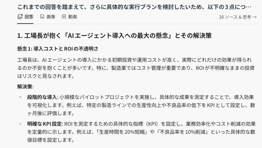 分からないことがあれば追加で質問を重ねることで、より深く掘り下げた情報をシームレスに得ることが可能です。