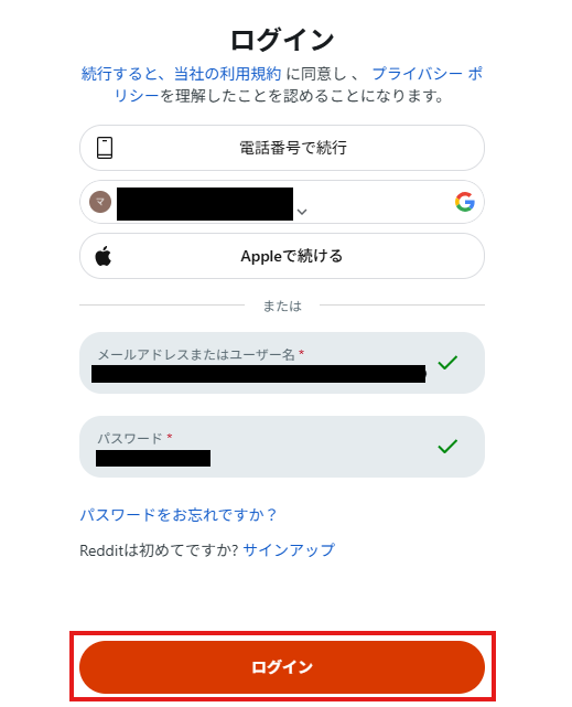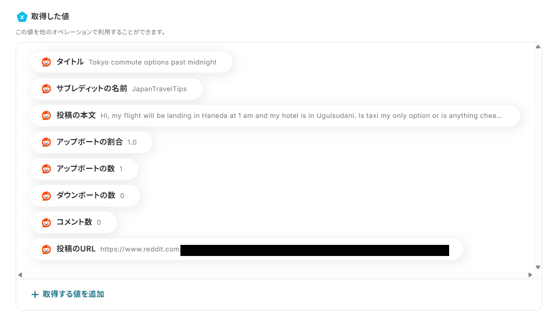 ※後続のRedditのトリガー設定時のテストで必要になります。