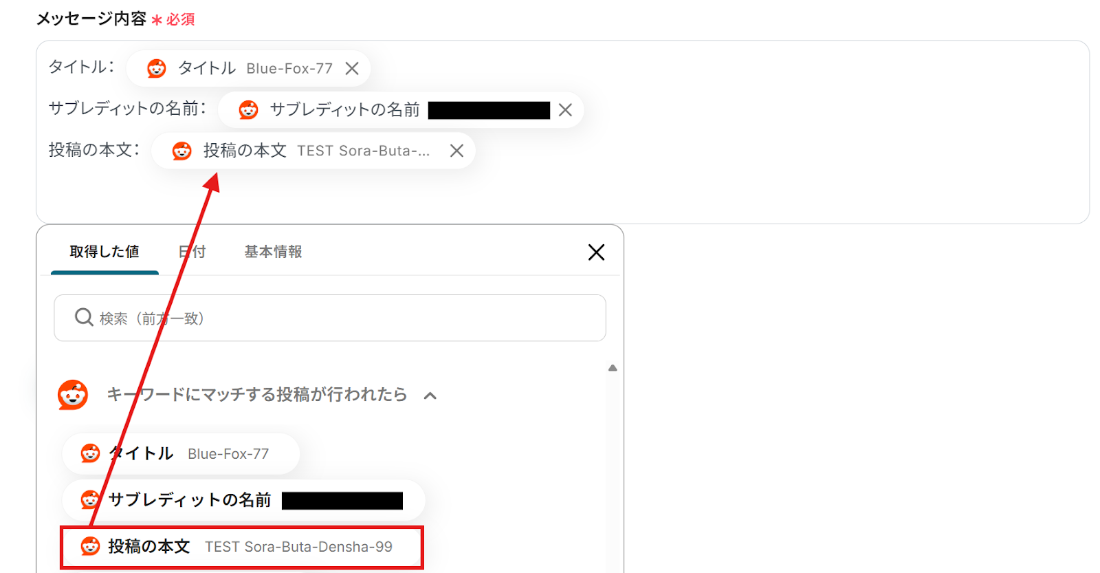 設定が終わったら、今回はテストとしてRedditの画面で試しにメッセージを投稿します。