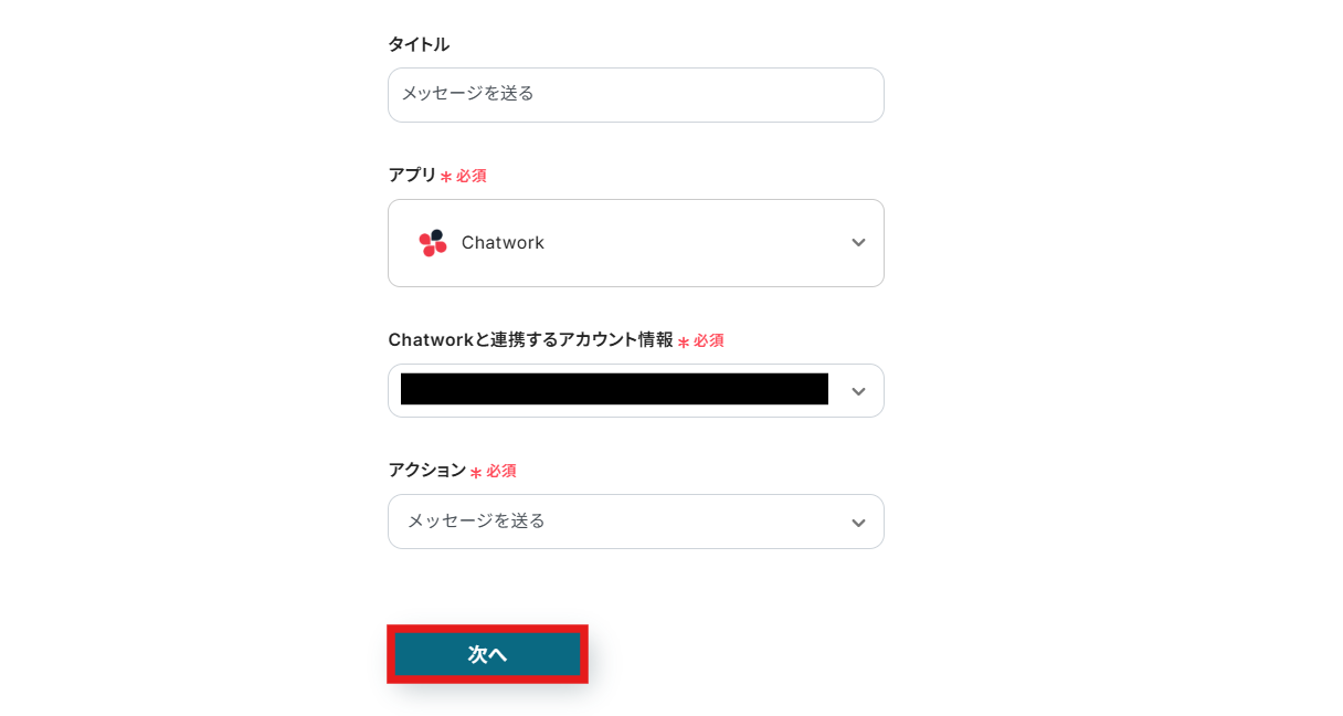 Chatworkと連携するアカウント情報はプルダウンから選択します。