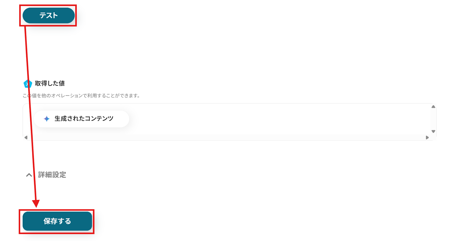 テストを終えたら、「保存する」をクリックするのを忘れないようにしましょう。 ※なお、以下の画像には表示されていませんが、テストが成功すると各項目に具体的な値が反映されます。