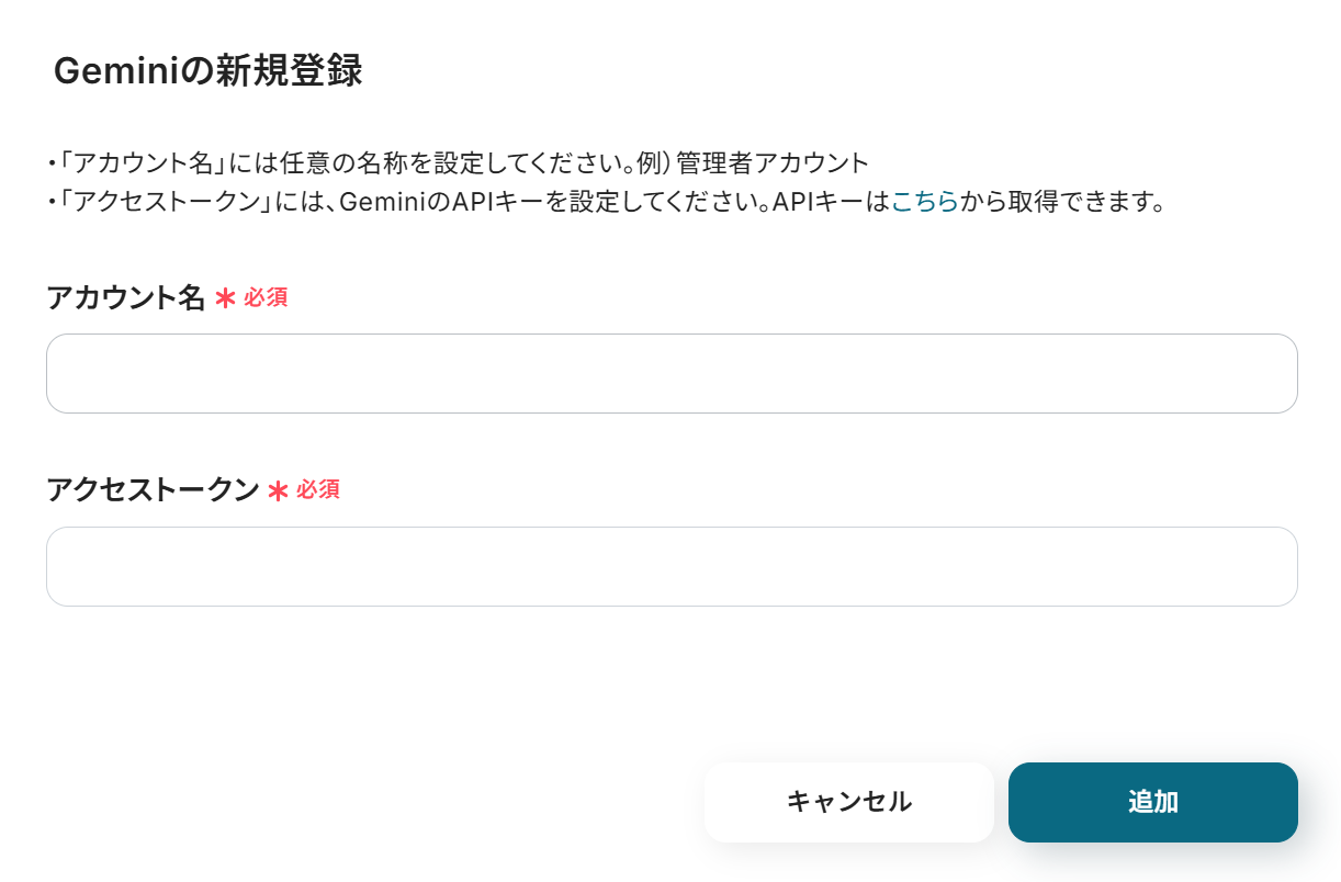 A:GeminiはYoomのフリープランでスタートできるアプリですが、GeminiAPIを活用するための料金についてはこちら をご覧ください。 また、その他Yoomの料金プランについてはこちらのページ をご覧ください。 Q:要約結果を自動で蓄積できますか?