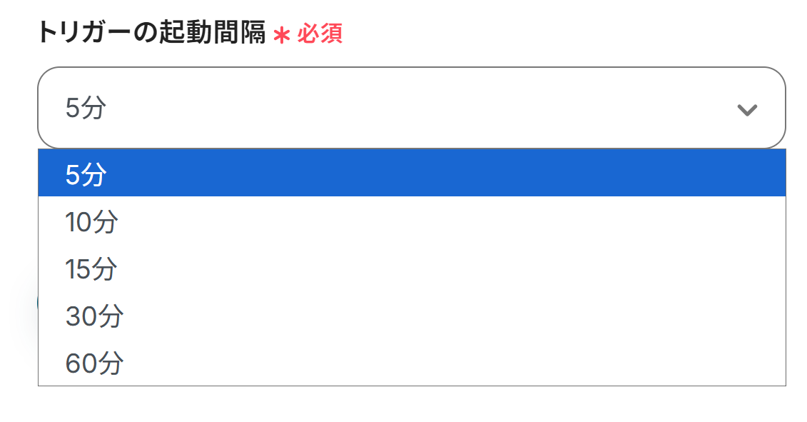 トリガーの起動間隔: 5分、10分、15分、30分、60分の間隔で起動間隔を選択できます。 プランによって設定できる最短の間隔が異なるので、こちら で事前に確認してくださいね! 迷ったら、選べる中で一番短い時間にしておくのがおすすめです。