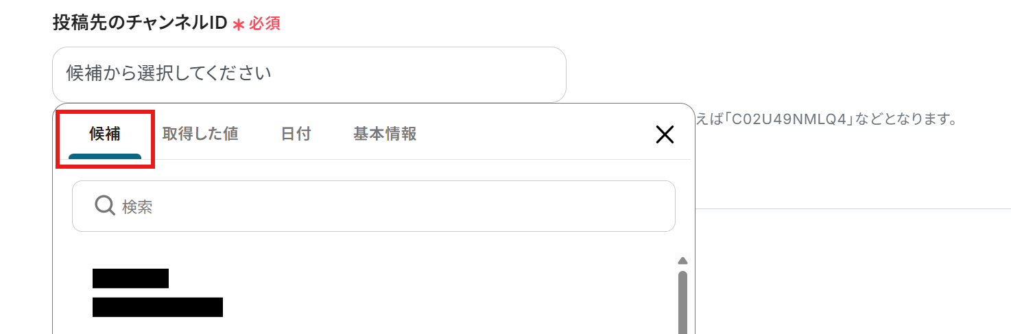 投稿先のチャンネルID :入力欄をクリックすると候補が表示されるので、その中から選択しましょう。チャンネルIDの確認方法についてはこちらの記事 も参考にしてみてくださいね。
