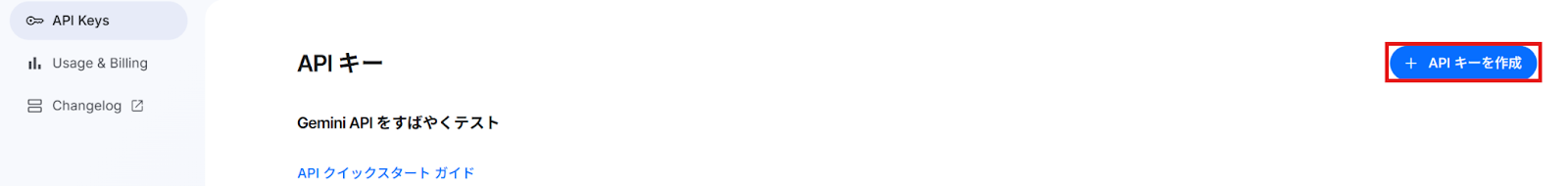 2. アクセストークンの設定には、GeminiのAPIキーが必要です。 APIキーの取得は、こちら のページから進められます。