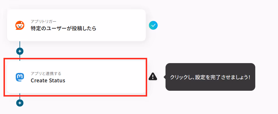 YoomでRedditの特定ユーザーの投稿を検知したら、自動でMastodonでStatusを作成するアクションを設定していきましょう。