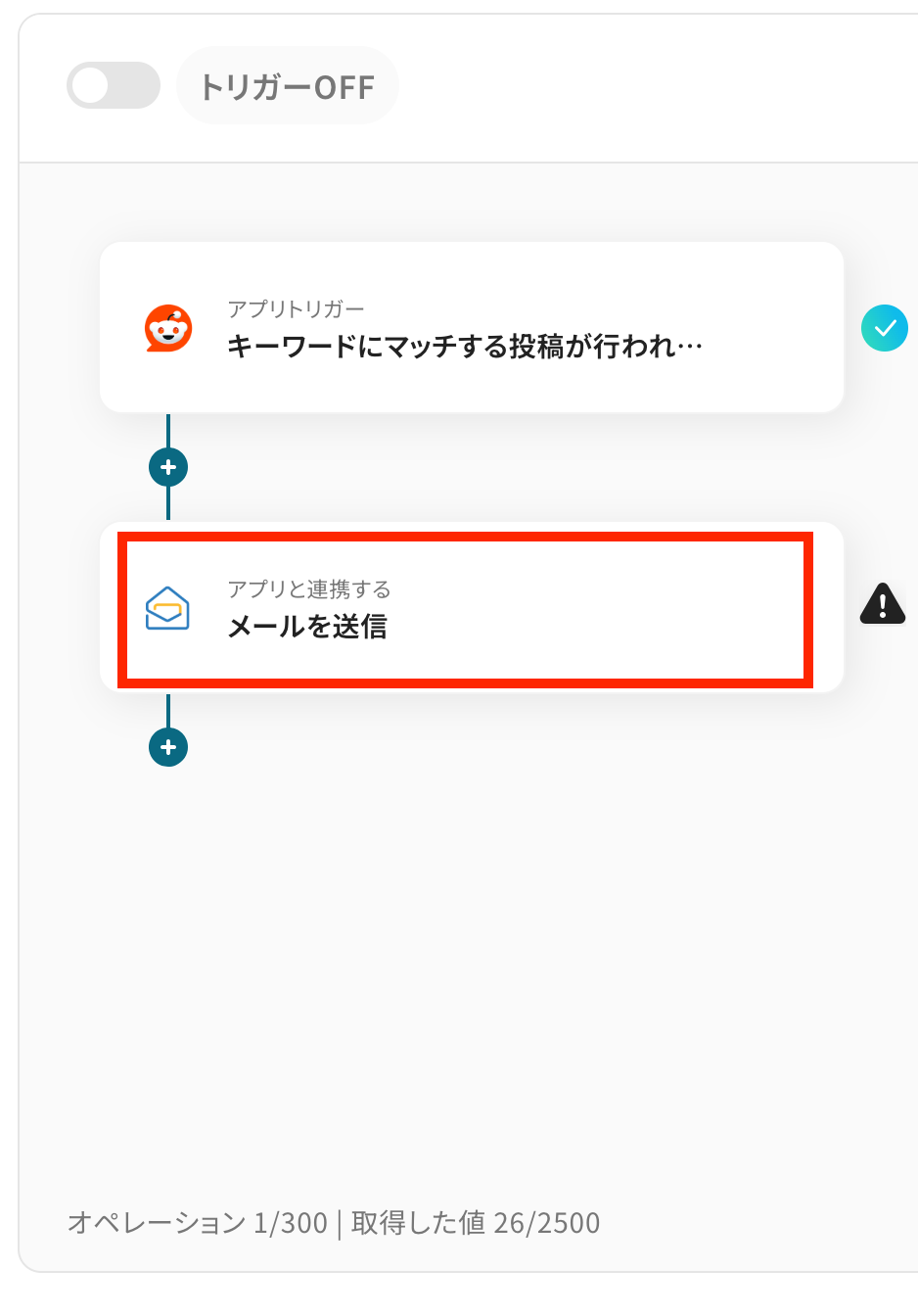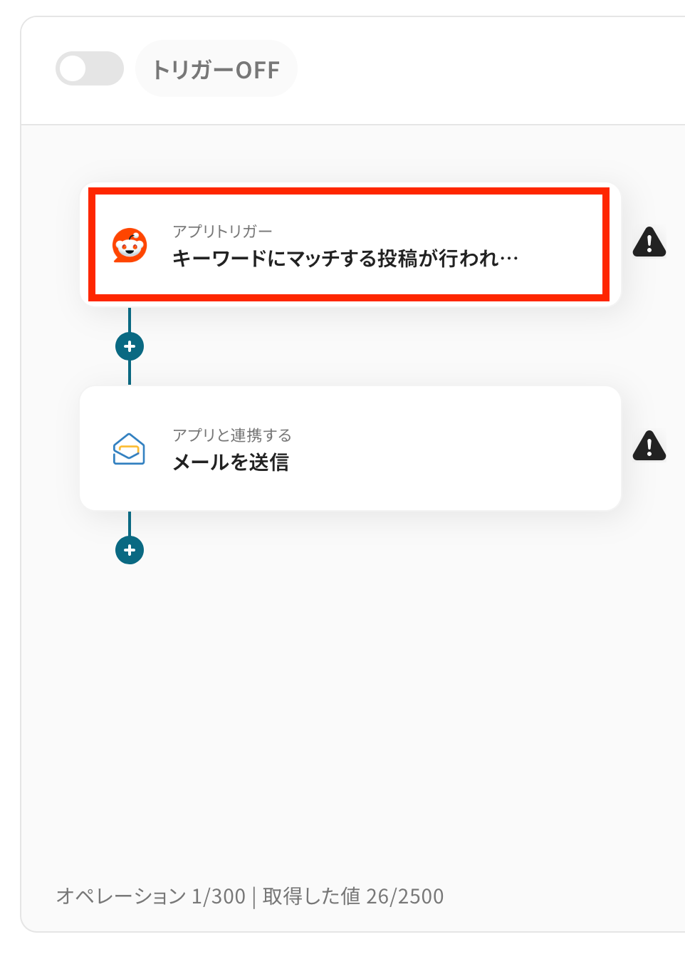 Redditで特定のキーワードを含む投稿が行われたことを自動化のトリガーにするための設定を行います。