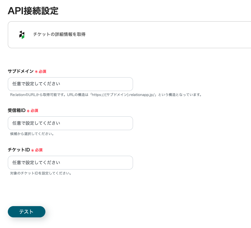 こちらではRe:lationで発行されたチケット情報を取得する設定をします。