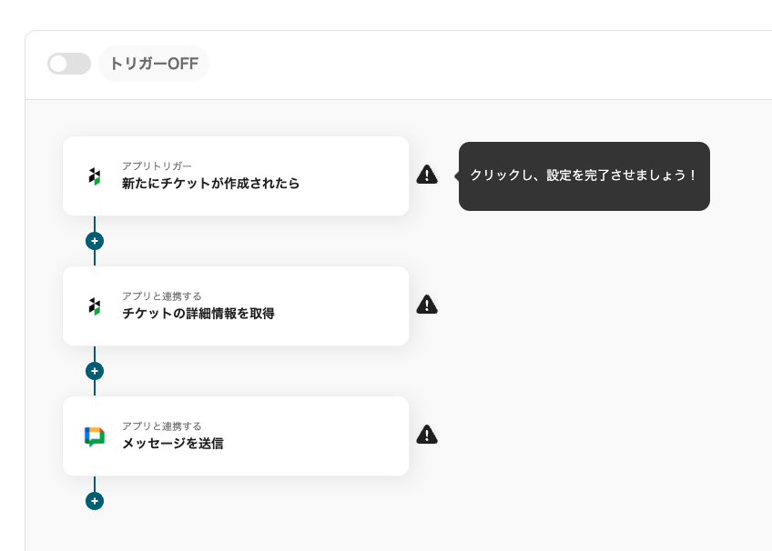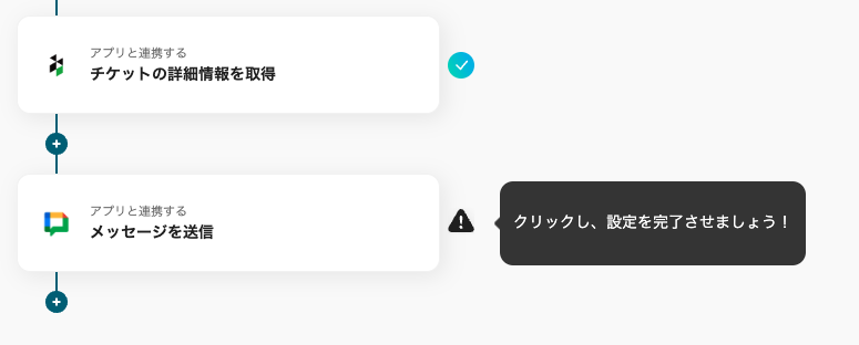 テンプレート2つ目の工程をクリックします。この工程では、前段階で取得したチケットIDから問い合わせ内容を取得します。