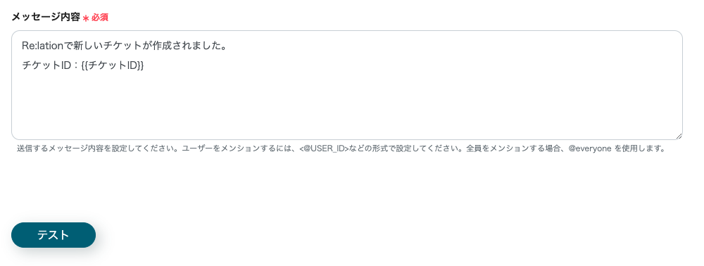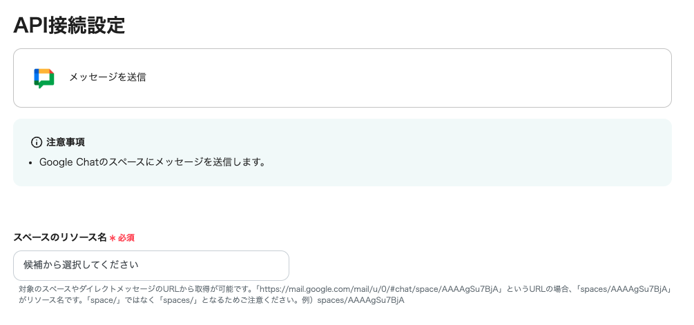 こちらではGoogle Chatに通知する定型文の設定を行います。