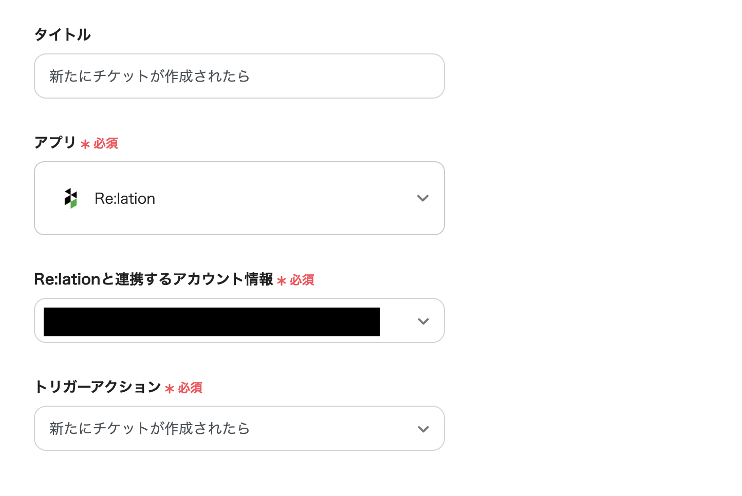 (1)まず、Re:lationのアプリトリガーを設定します。