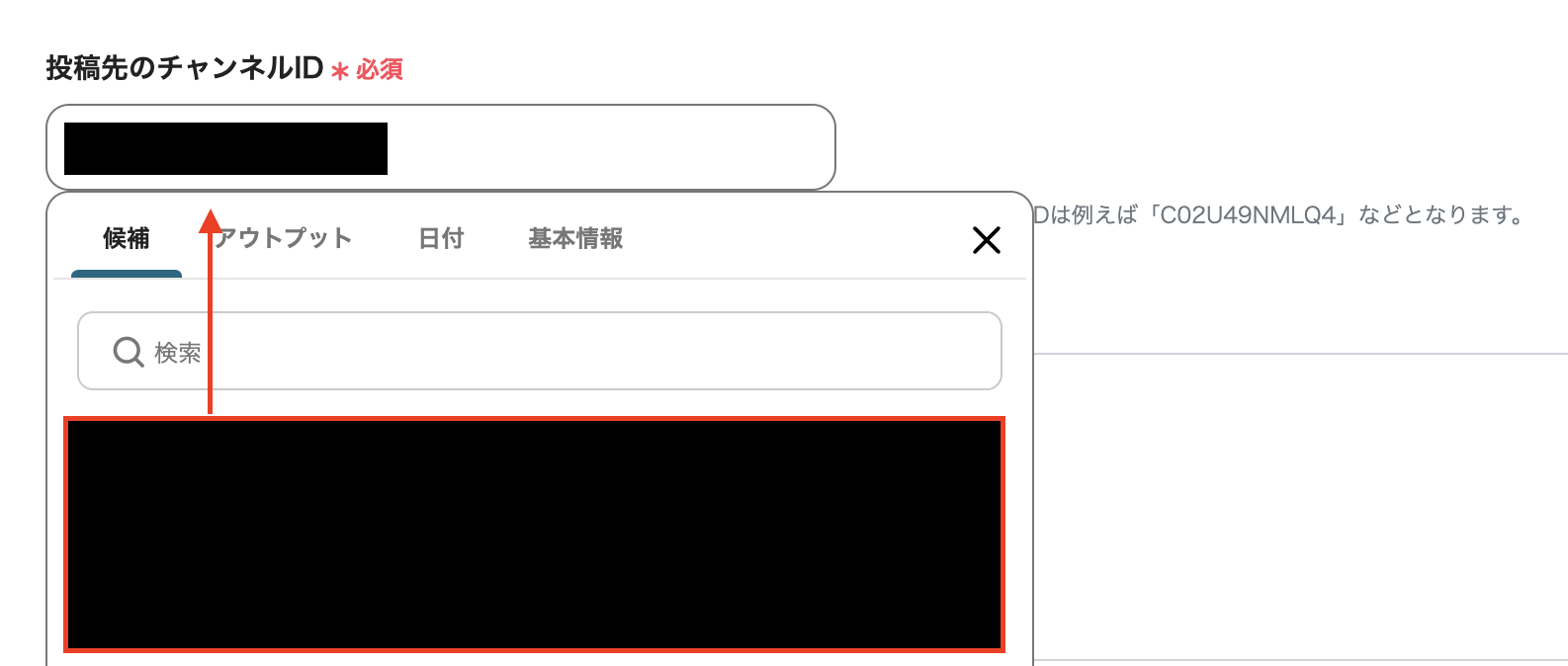 (3)次の画面で「投稿先のチャンネルID」を指定します。