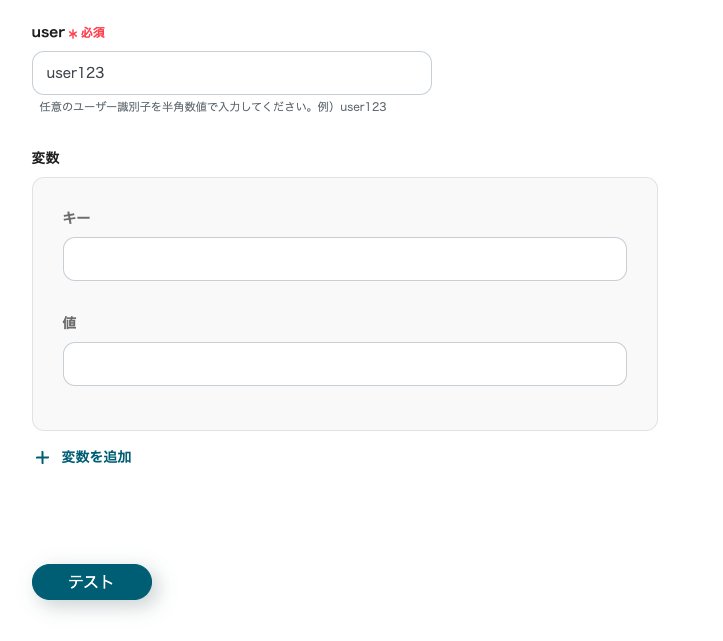 こちらではDifyに送信するプロンプト(指示文)の設定を行います。