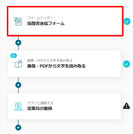 これで履歴書を読み取って、従業新情報を自動でSmartHRに登録することができます。
