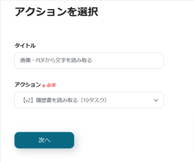 次のページでは、履歴書から読み取る内容の設定を行います。