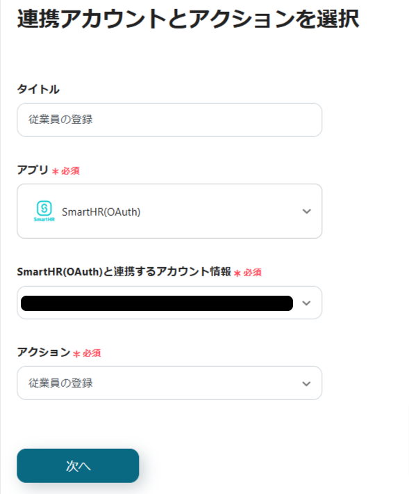 次に、SmartHRに登録する内容を設定します。
