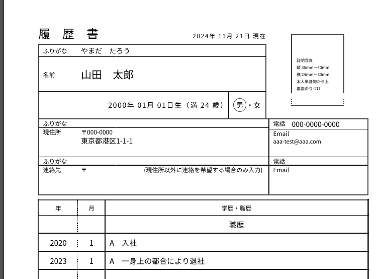 マイアプリ連携とともに、フロー設定のテストで使うための履歴書も用意しておきましょう。