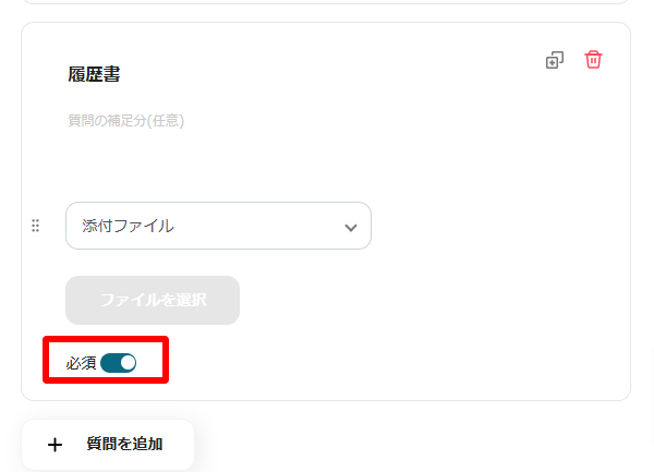 履歴書を提出する際の入力内容を設定していきます。