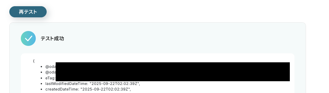 取得した値は、この後のステップで引用・活用できます。そのため、ここで得た情報をフォルダ作成時のフォルダ名に引用するといった活用が可能となります。