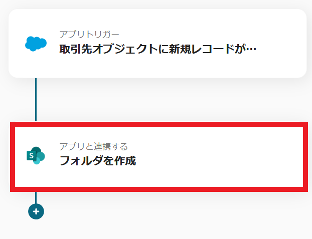Salesforceに新規取引先が登録されると、自動的にMicrosoft SharePointに対応するフォルダを作成するフローです。