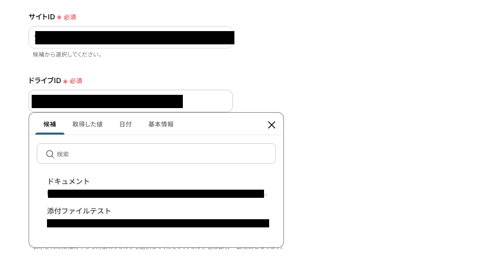 3.次の画面で「サイトID」や「ドライブID」などの項目に、注釈に沿って情報を入力していきましょう。