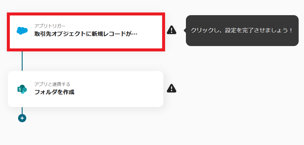 ■概要 Salesforceで取引先が登録されたらMicrosoft SharePointにフォルダを作成するフローです。 ■このテンプレートをおすすめする方 1.SalesforceとMicrosoft SharePointを併用する営業・顧客管理チーム ・Salesforceに登録した取引先情報をMicrosoft SharePointでも管理して関連ファイルを紐付けたい方 2.Salesforceを主に利用する営業担当者 ・SharePointのファイル共有機能を活用して取引先との情報共有をスムーズに行いたい方 ■このテンプレートを使うメリット Salesforceは顧客関係管理に不可欠なツールですが、取引先が登録されるたびにMicrosoft SharePointに手動でフォルダを作成するのは非効率的で時間がかかる作業です。 このフローを導入することで、Salesforceで取引先が登録されるとSharePoint上に対応するフォルダが自動的で作成されます。これにより、担当者はフォルダ作成の手間から解放されて顧客対応や営業活動など、より重要な業務に集中することが可能となります。 ■注意事項 ・Salesforce、Microsoft SharePointのそれぞれとYoomを連携してください。 ・Microsoft365(旧Office365)には、家庭向けプランと一般法人向けプラン(Microsoft365 Business)があり、一般法人向けプランに加入していない場合には認証に失敗する可能性があります。 ・Salesforceはチームプラン・サクセスプランでのみご利用いただけるアプリとなっております。フリープラン・ミニプランの場合は設定しているフローボットのオペレーションやデータコネクトはエラーとなりますので、ご注意ください。 ・チームプランやサクセスプランなどの有料プランは、2週間の無料トライアルを行うことが可能です。無料トライアル中には制限対象のアプリを使用することができます。