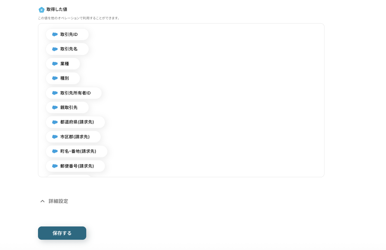 5.取得した値(アウトプット)に問題がなければ、『保存する』を押してください。
