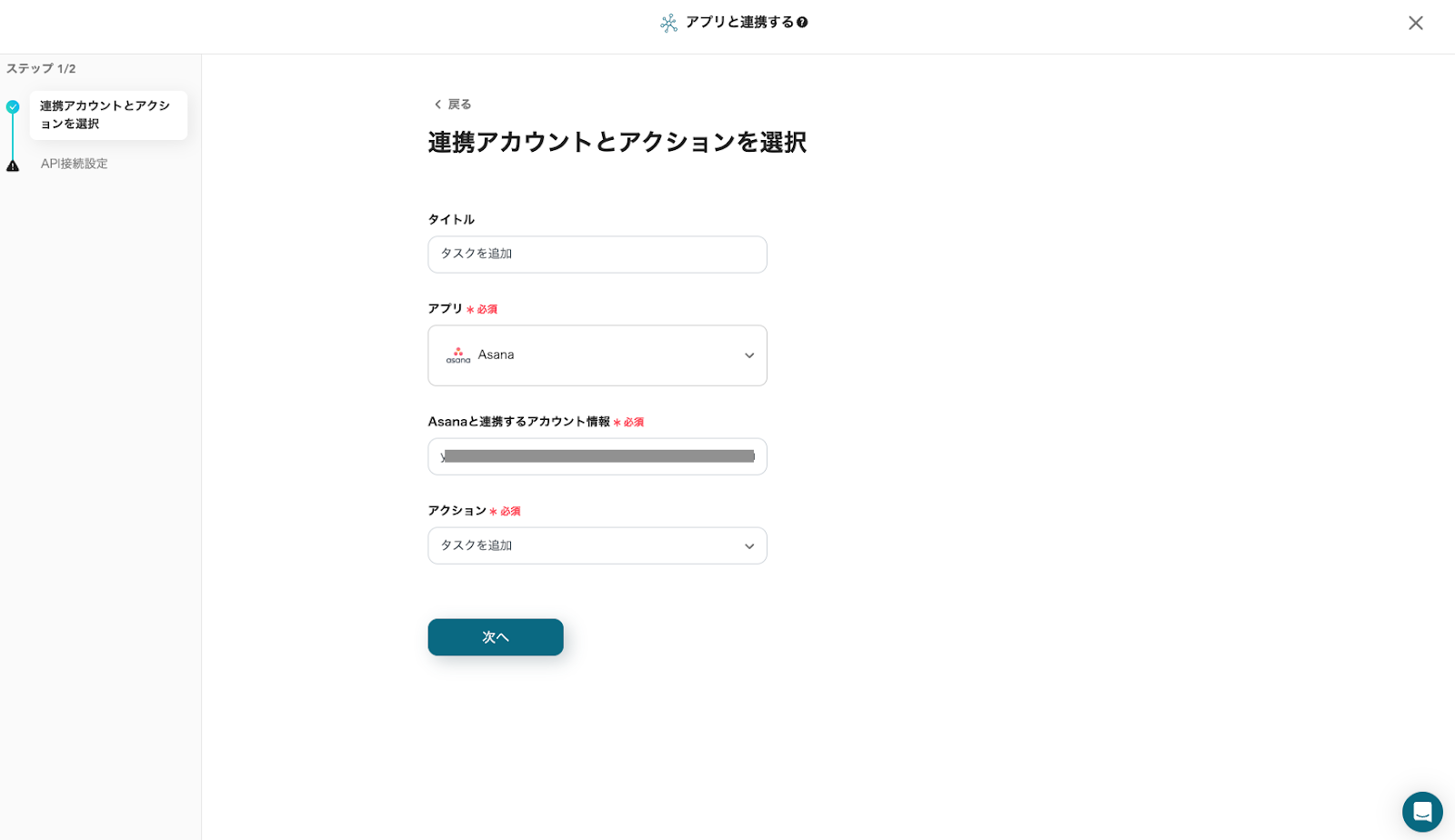 次に、Asanaにタスクを登録する設定を行います。