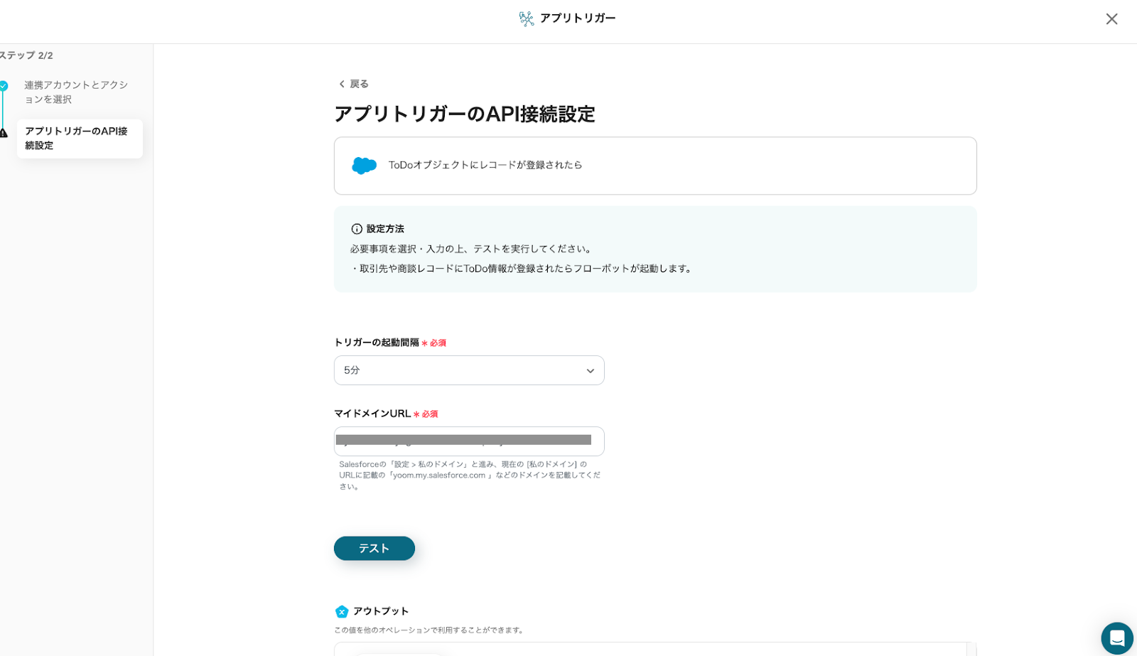 設定が完了したら、テスト用にToDoを新規登録してから「テスト」をクリックしてください。
