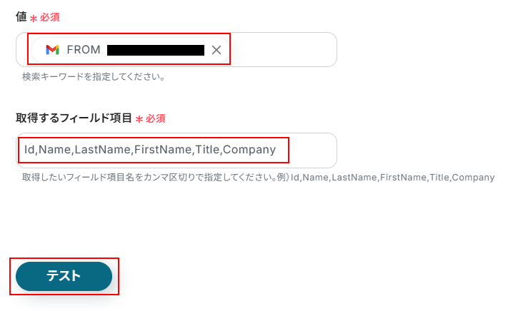 また、メールアドレスを使用しますので、テストで使用できるメールアドレスをリードに登録してください。