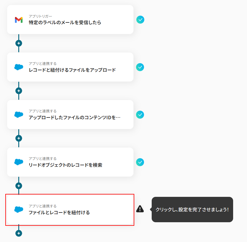 以上がGmailで特定のメールを受信した際に、添付ファイルをSalesforceにアップロードしてレコードと紐付けるフローでした!