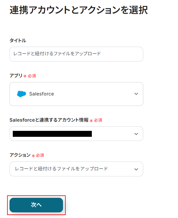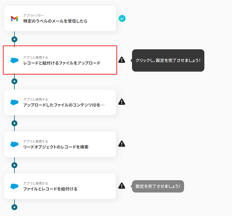 ステップ4:Salesforceのレコードと紐付けるファイルをアップロードする設定