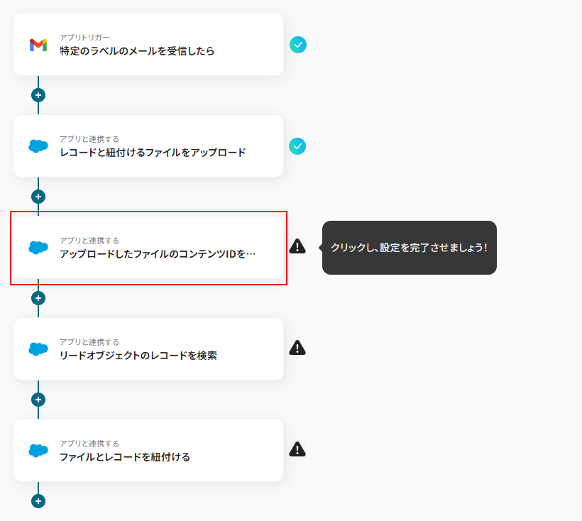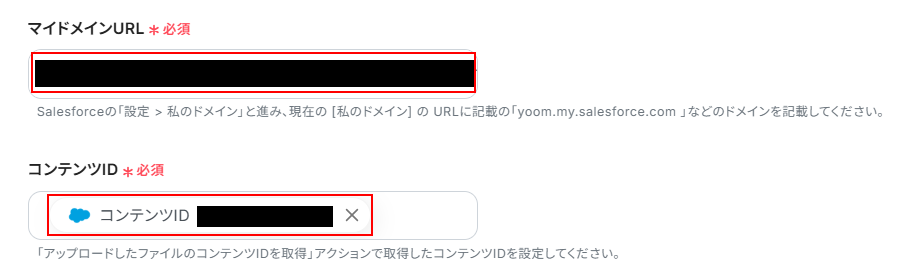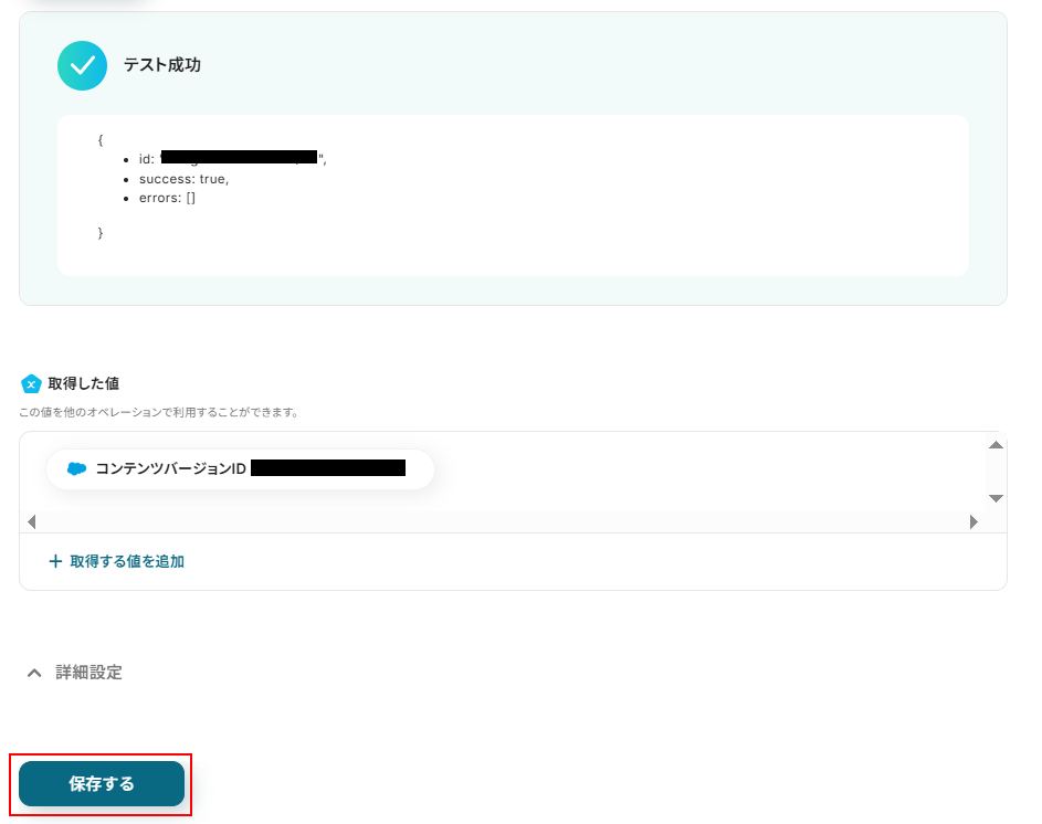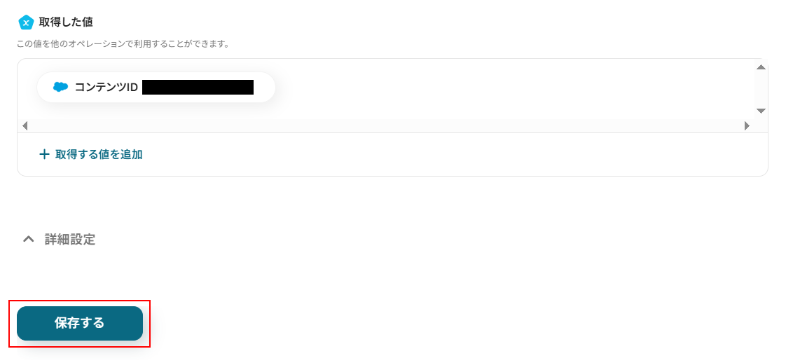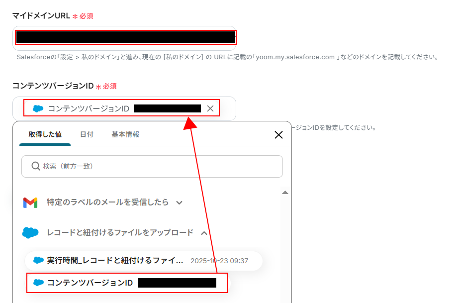 ステップ5:SalesforceにアップロードしたファイルのコンテンツIDを取得する設定