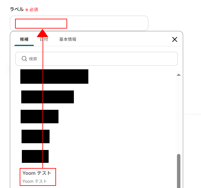 入力欄をクリックし、事前準備で作成したラベルを候補の中から選んでください。