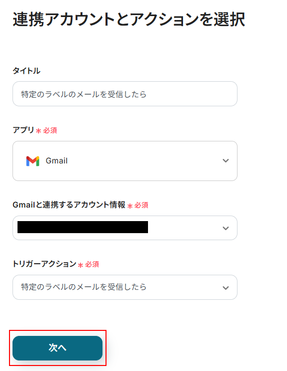ステップ3:Gmailの特定のラベルのメールを受信した際の設定