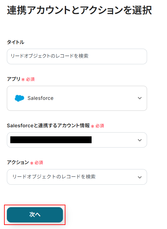 連携するアカウント情報がステップ4と同じアカウントになっていることを確認し、次へをクリックしてください。