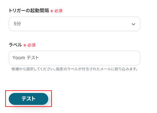 Yoomの画面に戻り、連携テストを行います。テストボタンをクリックしましょう。