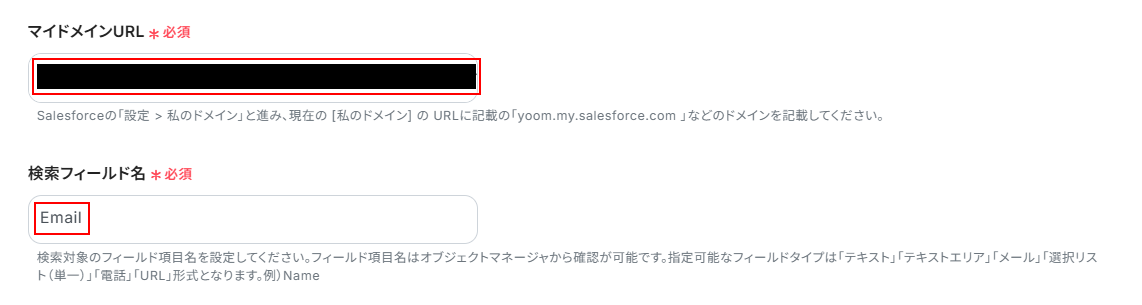 ※Salesforceで行っている設定に合わせて選択してください。異なるものを選択するとエラーになってしまう可能性があります。