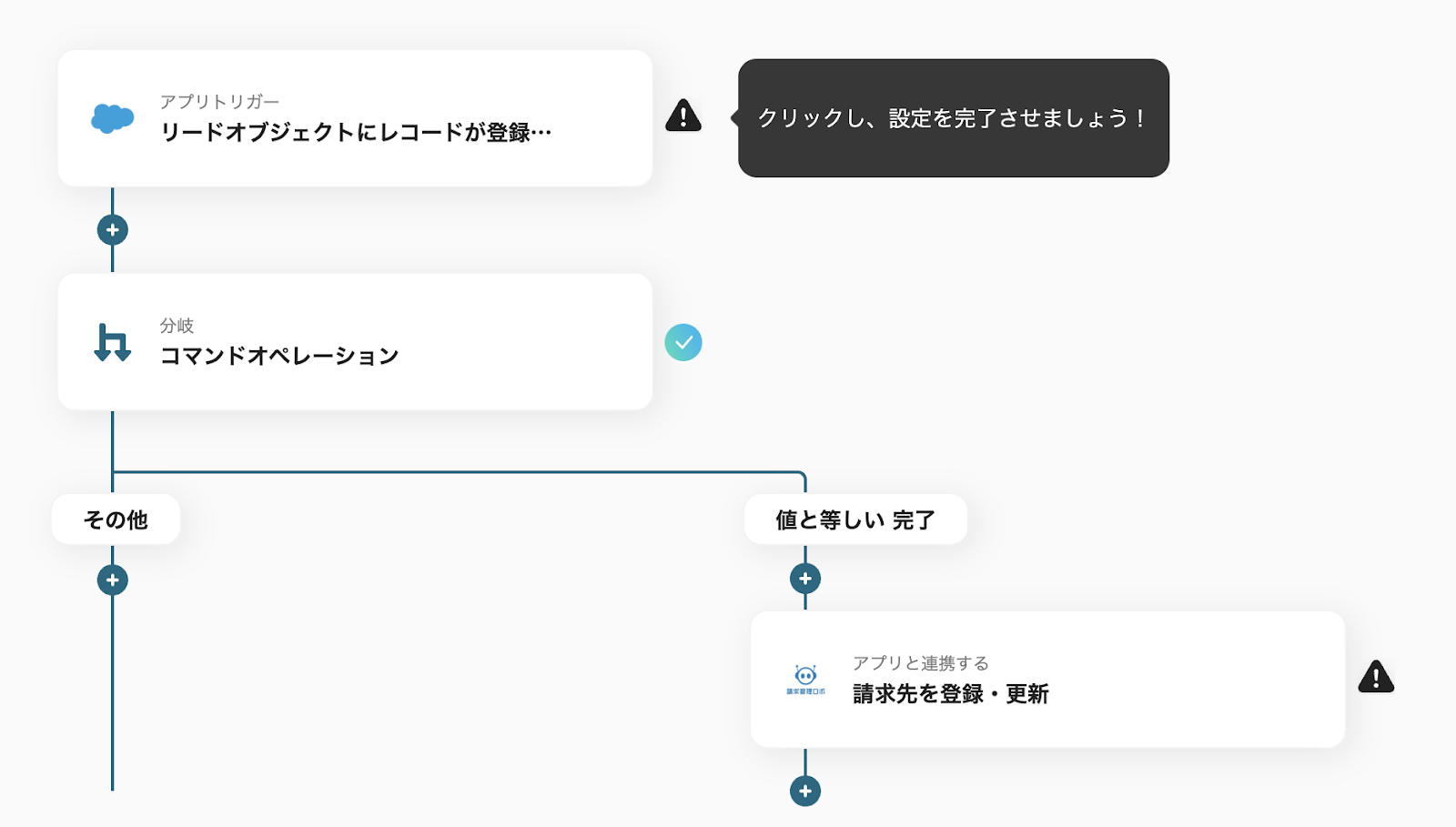 ステップ2:Salesforceのトリガー設定や分岐の設定