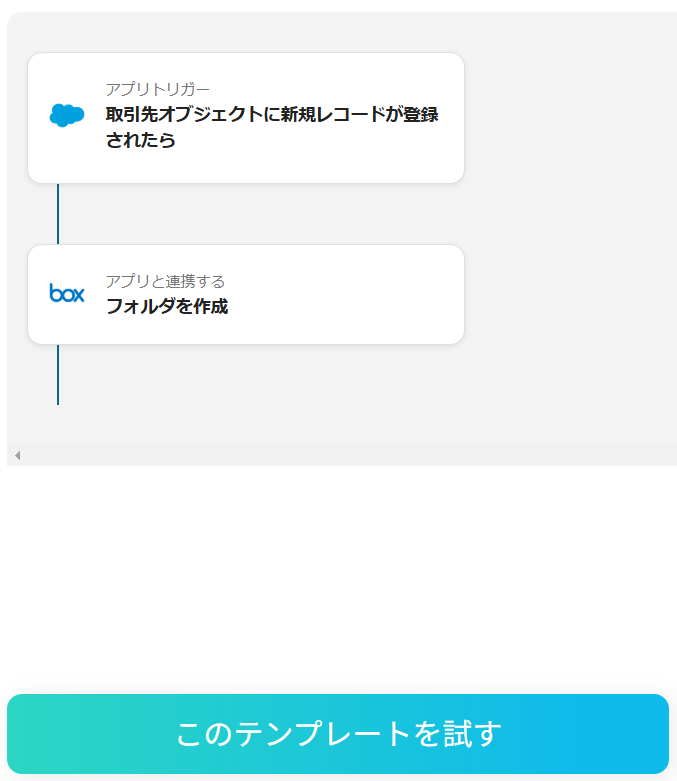それではここから、ノーコードツールYoomを使って、「Salesforceで取引先が登録されたらBoxに自動で取引先毎のフォルダを作成する」方法を紹介します。