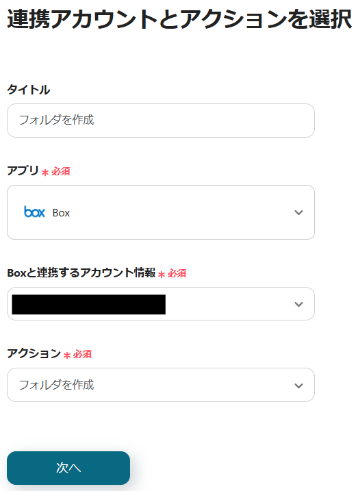 2.Boxと連携するアカウントを確認し、「次へ」をクリックします。
