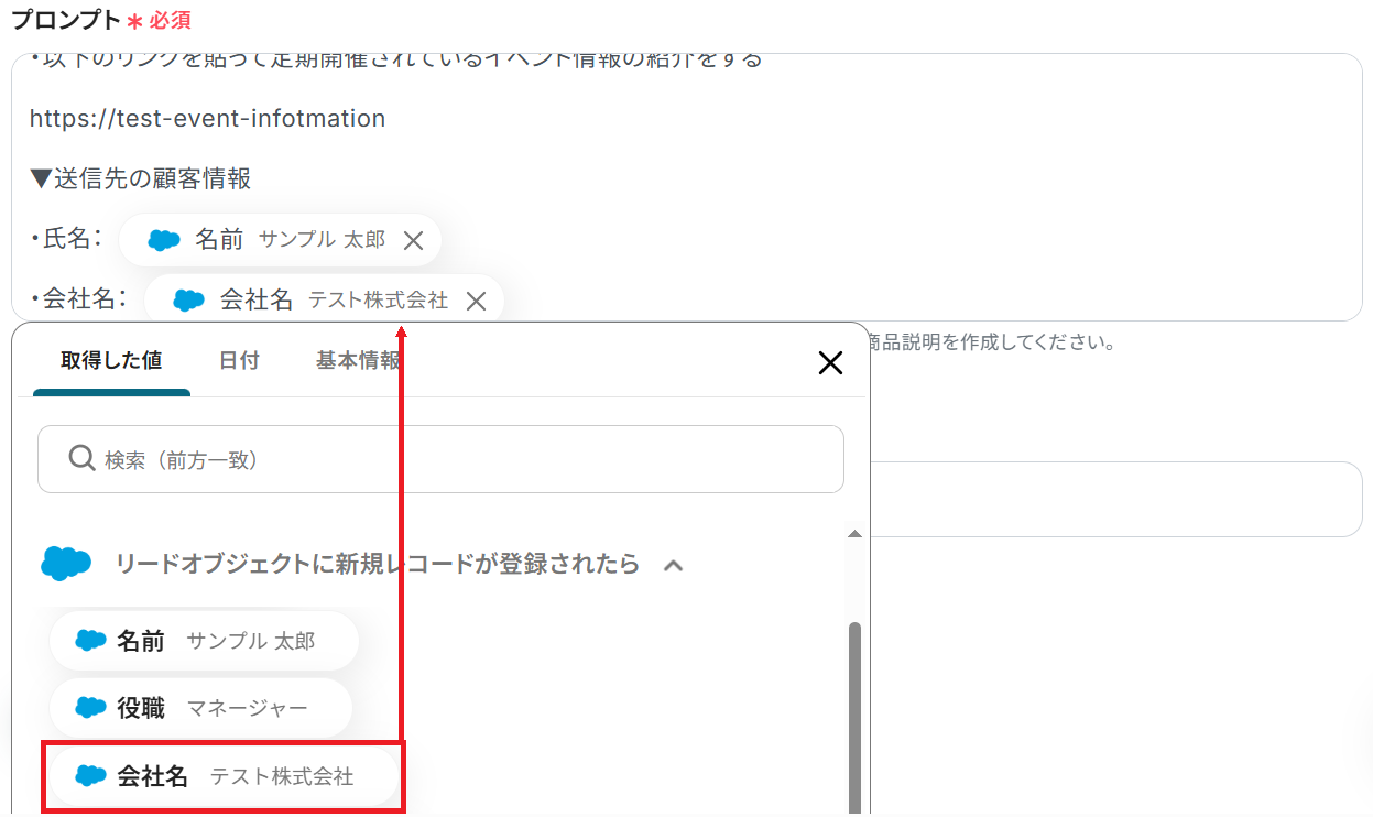 先ほど取得したリード情報をもとに、メールの文面を生成します。