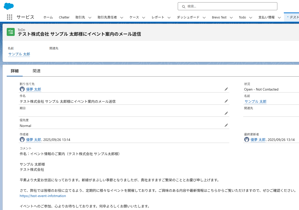 Salesforceのリード情報をもとに、Todoオブジェクトが登録されました!