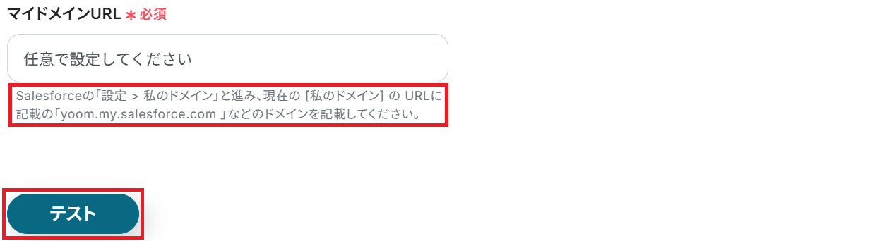 次にテキストボックス下部の説明を参考にマイドメインURLを入力します。