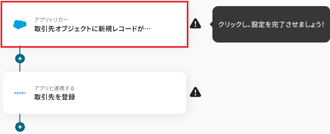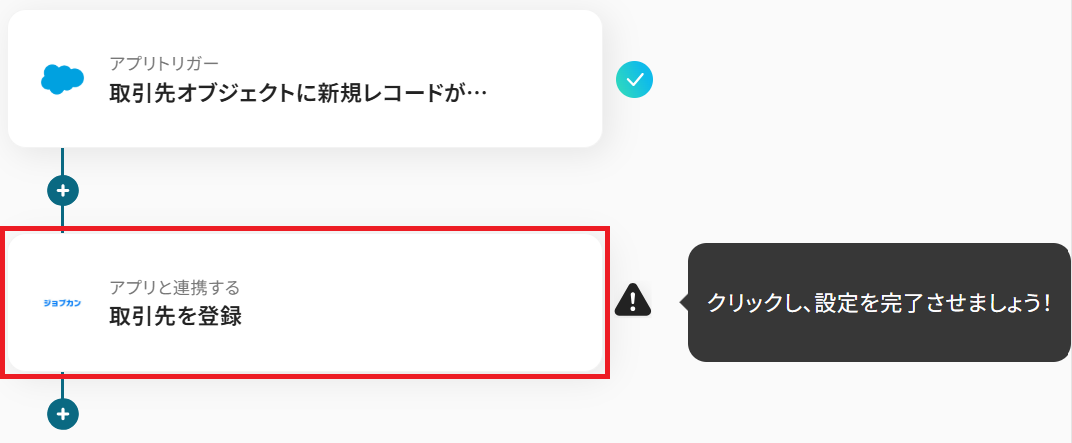例えばSalesforceで新しい取引先が登録された際に、その情報を自動でジョブカン経費精算・ワークフローにも登録するといった業務の自動化が実現します。