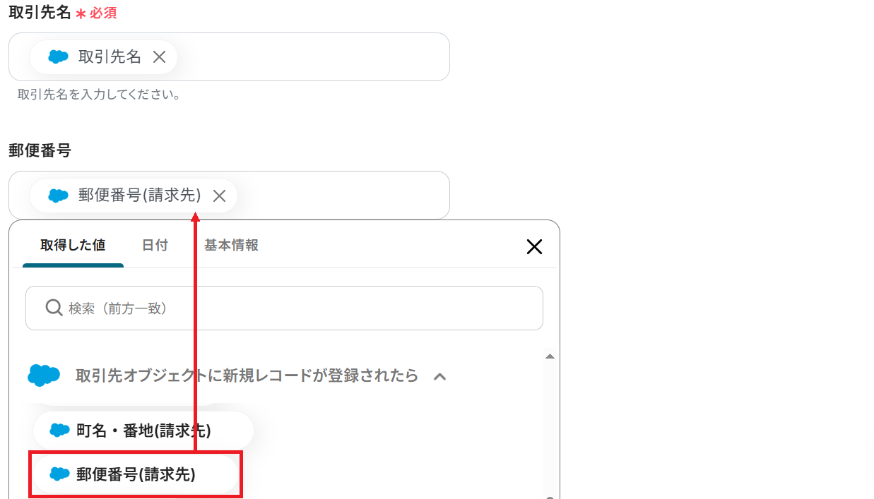 以下のようにステップ3で取得したアウトプットを利用することで、Salesforceの情報を反映させることができます。