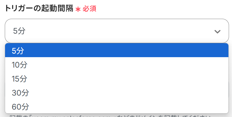 ・トリガーは5分、10分、15分、30分、60分の間隔で起動間隔を選択できます。
