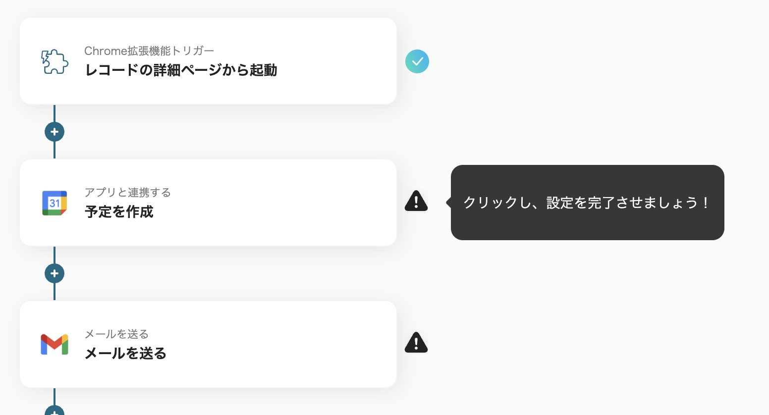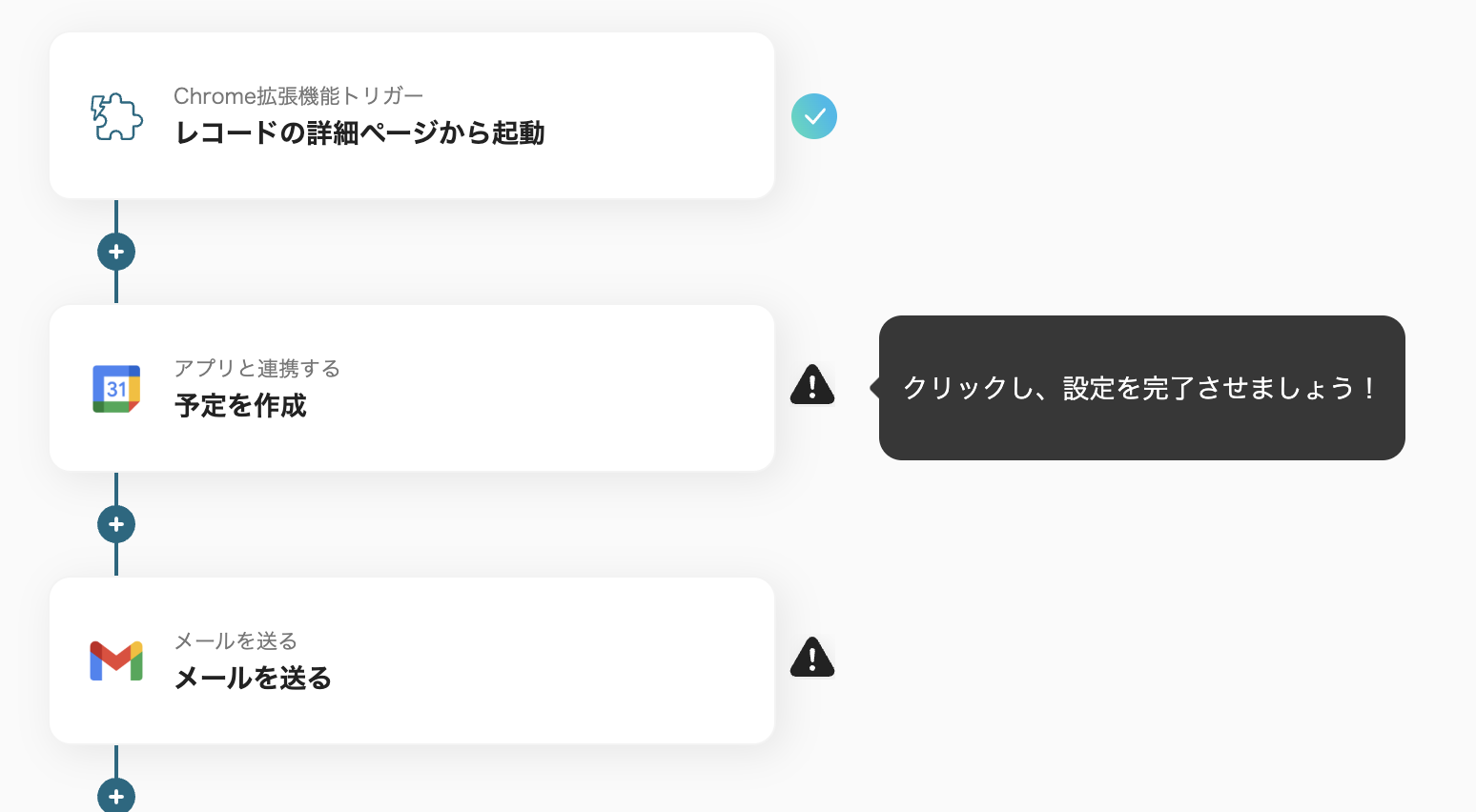 ・Salesforceの拡張機能設定のトリガー確認とGoogleカレンダーの設定、続くGmailの各オペレーションの設定