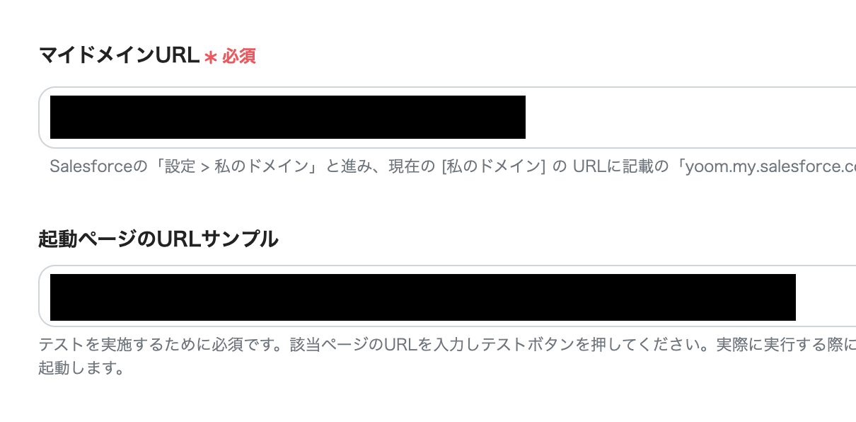 (5)次の画面で「マイドメインURL」や「起動ページのURLサンプル」を注釈に沿って入力していきます。